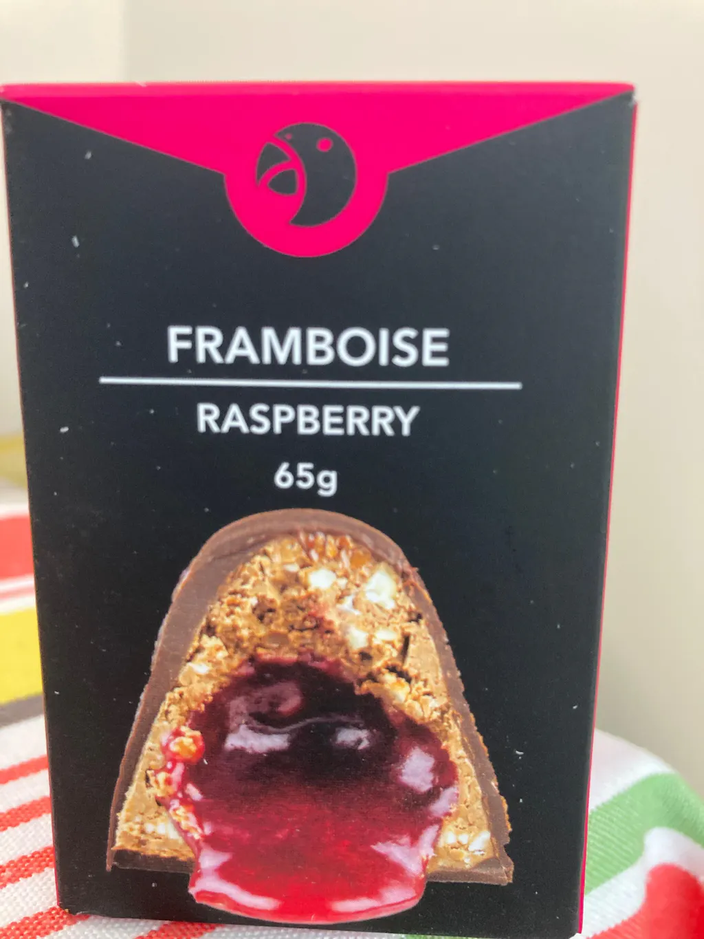 Chaque bouchée révèle un équilibre parfait : la douceur ronde du chocolat au lait, la richesse du praliné noisette et la vivacité acidulée de la framboise.